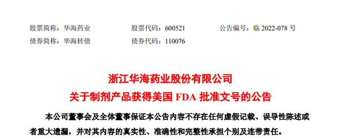 浙江华海药业股份有限公司(以下简称“公司”)收到美国食品药品监督管理局的通知,公司向美国FDA申报的沃替西汀片的新药简略申请(ANDA,即美国仿制药申请)已获得暂时批准(暂时批准:指FDA已经完成仿制药的所有审评要求,但由于专利权或专卖权未到期而给予的一种批准形式)