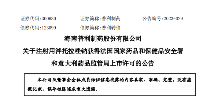 近日,两药企分别发布了产品海外上市进展公告,具体为普利制药制剂钆布醇注射液获得了FDA上市许可、注射用泮托拉唑钠分别获得了法国和意大利上市许可,上海医药的制剂瑞舒伐他汀钙片获得了菲律宾的注册批件。