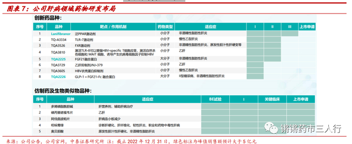 ■ 3)肝病领域:①天晴甘美(异甘草酸镁注射液):2022年持续快速增长,通过各层级学术会议加强了医生覆盖和专家认可;②Lanifibra: 拉尼兰诺(泛PPAR激动剂)优势显著,目前处全球临床III期,是国内首个进入临床III期的NASH药物,有望填补国内NASH市场的空白;③其余管线:截止2022年底,公司肝病领域共有8个创新候选药物处临床申请以上阶段,其中1个临床III期,4个临床II期,3个临床I期,1个处临床申请阶段。此外,公司还拥有4个肝病领域的生物类似药或仿制药品种处临床申请以上阶段,包括3个处上市阶段,1个临床III期。整体来看,预计未来三年(2023-2025年)肝病领域将有4个生物类似药或仿制药获批上市。