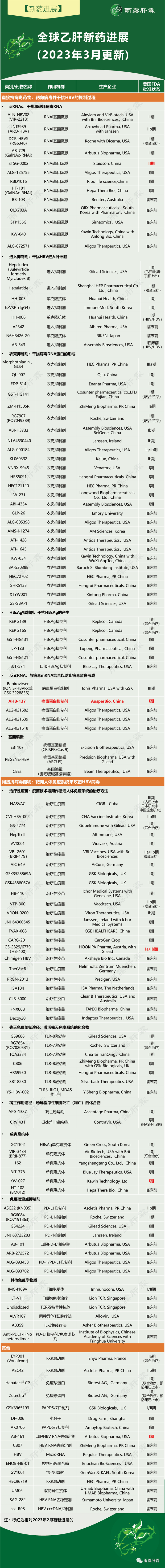 2023年3月全球乙肝新药进展