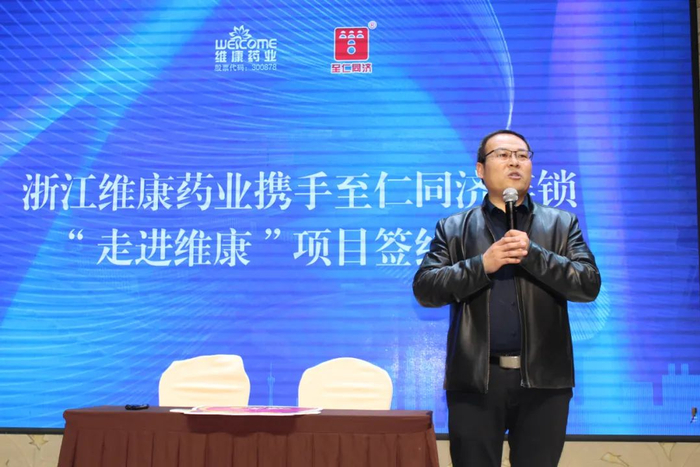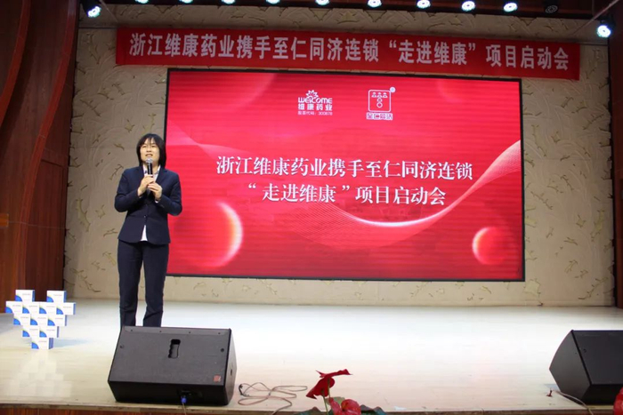 至仁同济董事长助理兼商品服务中心总监杨玉琴在总结讲话中表示:感谢维康药业多年来的支持,表示本次活动非常有意义,不仅所有直营门店要完成指标,我们的加盟店也要参与进来,进行双向pk。维康药业一路陪伴,产品在药店扎根成长,已形成良好口碑,双方团队对于维康产品在市场的销售要给予重视,我们要与维康共同携手,以顾客的健康为核心,做好顾客的服务工作。大家要坚定信心,在接下来的活动当中超越自我,勇创佳绩!