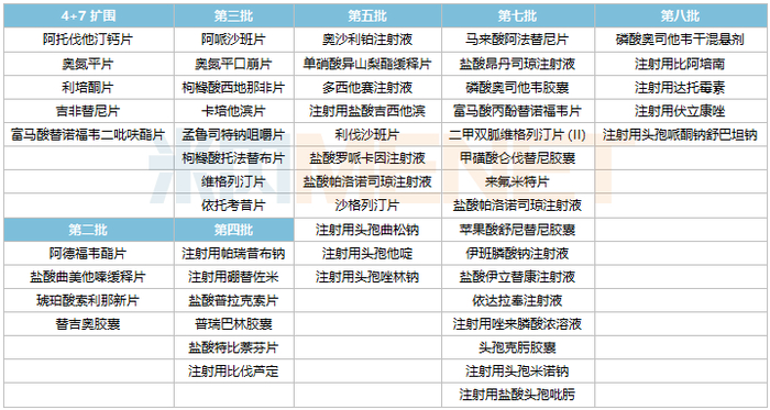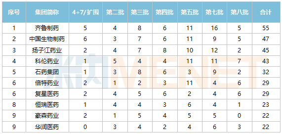 中国生物制药七批化药集采中选情况