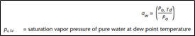 因为水的饱和蒸汽压在露点温度等于测量温度下空气的水蒸气压,因此露点温度可以用来确定水的蒸汽压。此方法是经AOAC国际认证的首要的测量水分活度的方法,也是美国USP和FDA推荐方法,能在5分钟内完成水活度测定。以下是USP中此方法的计算公式。
