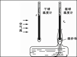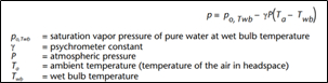 用湿纱布包扎普通温度计的感温部分,纱布下端浸在水中,以维持感温部位空气湿度达到饱和,在纱布周围保持一定的空气流通,使周围空气接近达到等焓。示数达到稳定后,此时温度计显示的读数近似认为湿球温度。以下是USP中此方法的计算公式。
