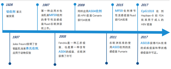 1925年,佐剂首次出现在大众视野中,被描述为“与特定抗原结合使用的物质,能够比单独使用该抗原产生更强的免疫力”。免疫佐剂现在广泛地与多种疫苗结合使用,除了可以增强免疫应答外,它还具备降低抗原使用量、高效激活免疫系统、延长效价水平等优点,对提升疫苗诱导机体产生的免疫效果具有重要价值,也是全球疫苗研发中绕不开的焦点材料。