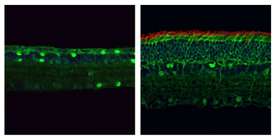 此前研究人员利用基因编辑技术恢复了患有遗传性疾病的小鼠的视力,比如莱伯先天性黑朦(Leber congenital amaurosis),其会影响视网膜的色素上皮功能,而视网膜色素上皮组织是眼睛中能支持感光的杆状和锥状光感受器器官的一层非神经信细胞;然而,包括视网膜色素变性在内的多种遗传性失明形式都是由神经光感受器自身的遗传缺陷所引起的。