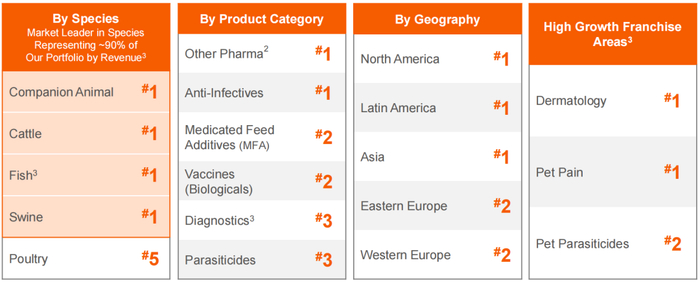 其中,美国的硕腾/Zoetis是全球最大的动物保健公司,也是全球动保行业的领导者,其前身是辉瑞的动物保健部门。