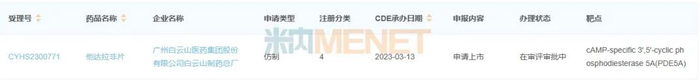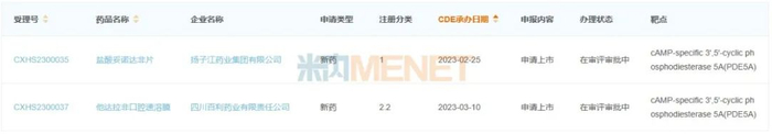 图2:2023年至今白云山申报上市的抗ED药物