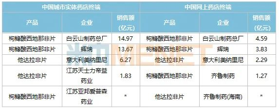 注:销售额低于1亿元用*表示