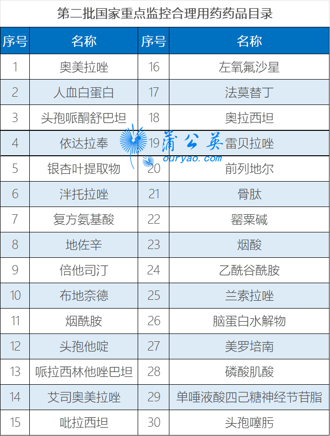 奥美拉唑、人血白蛋白、头孢哌酮舒巴坦、依达拉奉、银杏叶提取物、泮托拉唑、复方氨基酸、地佐辛、倍他司汀、布地奈德、烟酰胺、头孢他啶、哌拉西林他唑巴坦、艾司奥美拉唑、吡拉西坦、左氧氟沙星、法莫替丁、奥拉西坦、雷贝拉唑、前列地尔、骨肽、罂粟碱、烟酸、乙酰谷酰胺、兰索拉唑、脑蛋白水解物、美罗培南、磷酸肌酸、单唾液酸四己糖神经节苷脂、头孢噻肟。详见<30个药品→重点监控!>
