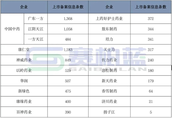 截至2023年4月初,代表性企业在国家药监局可以查到的上市备案信息条数如下: