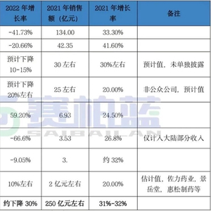 在2021年中药配方颗粒市场销售额同比增长31%-32%,达到约250亿元的高峰后,笔者统计测算后预计,2022年全年中药配方颗粒企业合计销售额不到180亿元,同比预计下降30%左右。