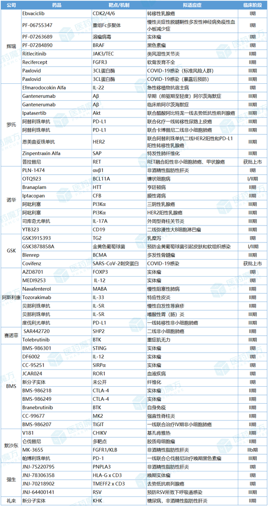 制药巨头2022Q4-至今终止的项目