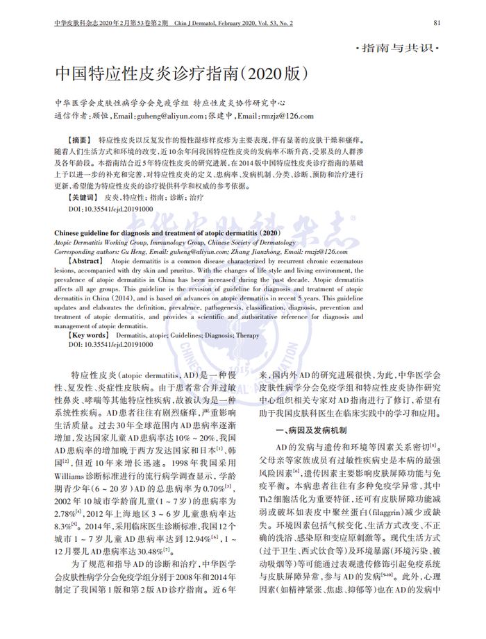 发布机构:中华医学会皮肤性病学分会免疫学组、特应性皮炎协作研究中心