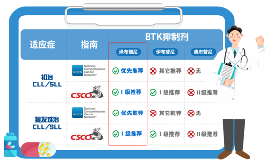 2022年以来,美国FDA和欧洲EMA先后发布警示,提示应用第一代BTK抑制剂伊布替尼伴随的心血管风险,而考虑到一代BTK抑制剂的毒性,2023年V1版的NCCN指南将伊布替尼在一线和二线CLL治疗推荐由“优先推荐”转移至“其他推荐”。