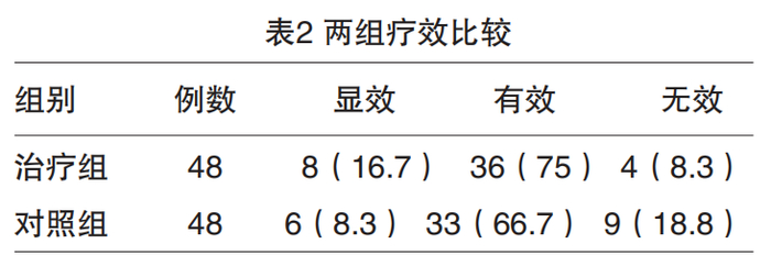 2.1两组疗效比较 治疗组与对照组总有效率分别为91.7%与71.2%,经比较差异具有统计学意义(P<0.05,见表2)。2.2药物不良反应 两组患儿均未发生与药物有关的不良反应。所有受试者在用药后观察呼吸、血压和心率均未发生异常。受试者用药前后进行血、尿常规检查及肝肾功能和心电图检查,均未发现异常改变。