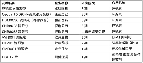 目前,兆科眼科、康哲药业、和铂医药和恒瑞医药均有布局环孢素管线。