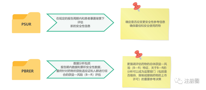 与DSUR对应,PSUR或PBRER是针对获得上市许可的药物需要准备的安全性总结报告。