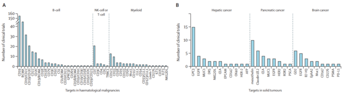 然而,CAR-T细胞治疗的靶点研究主要集中于先前已知靶点在人类中的首次应用和扩展适应症,新靶标的开发和基础研究仍然是中国的主要缺点。