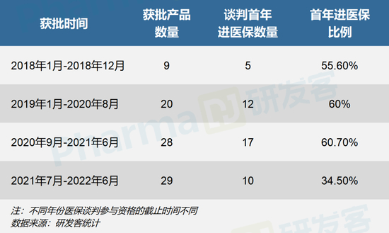 但总体看,肿瘤精准治疗产品加入医保目录的比例较其他类型产品明显偏低,医保报销率仅25%。2022医保谈判年度内获批的产品,绝大多数未参与医保谈判,参与者也未能谈判成功。