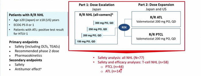 去年9月,伐美妥司他获日本厚生劳动省(MHLW)批准上市,用于治疗复发或难治性T细胞白血病/淋巴瘤(ATL)成人患者。ATL是一种罕见的侵袭性外周T细胞淋巴瘤(PTCL),在日本部分地区和其他地区发病率较高;近90%的患者在完成强化一线治疗后复发,此时几乎没有可用的选择。