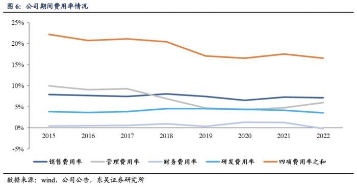 股份支付费用增加,管理费用率提高。2022年,公司销售费用率、研发费用率、财务费用率下降,管理费用率为6.04%,同比上升1.27个百分点,主要由于股权激励成本分摊、非同一控制下企业合并 5 家康复医院及新设医院所致。