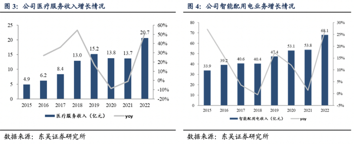 盈利预测与投资评级:考虑到公司2023年拟并购5家医院与智能配用电业务利润率提升,我们将公司2023-2024年归母净利润由 11.98/14.68亿元,上调至12.13/16.15亿元,预计2025年为19.46亿元,对应当前市值的PE分别为16/12/10倍,其中,估计2023年、2024年医疗服务利润分别约2.5/3.2亿元。维持“买入”评级。