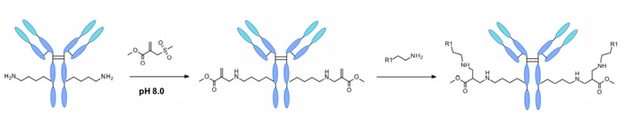 最近,同样也报道了对赖氨酸位点和残基的特异性修饰。通过计算机辅助设计,磺酰丙烯酸酯被用作中间试剂,用于在天然蛋白质序列上对单个赖氨酸残基进行修饰。