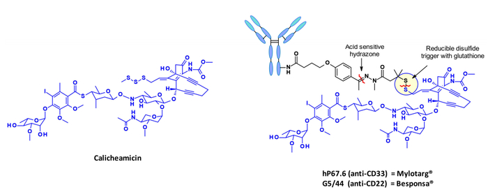 卡奇霉素是一类被广泛研究的烯二炔类抗生素,其结构和作用机制特别有趣和复杂,使其成为ADC有效载荷领域的一类抗生素。在ADC中连接calicheamicin的策略以市场上的adc Mylotarg为例,还有Besponsa。