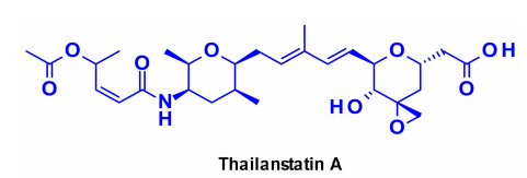 靶向剪接体是一种参与mRNA加工的大型核糖核蛋白复合物,为靶向癌症治疗提供了一种有希望的治疗选择。有几种天然产物能够通过与不同的剪接体亚单位结合来抑制RNA剪接。最具代表性的是thailanstatin A,它可以与剪接体的SF3b亚单位结合,从而阻止RNA剪接。
