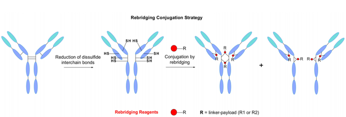 在这一策略中,由创新的二溴甲基酰胺(DBM)或二噻吩基马来酰亚胺(DSPh)组成的异质双功能连接体可以通过区域特异性生物偶联产生更均匀和更稳定的ADC,DAR为4。