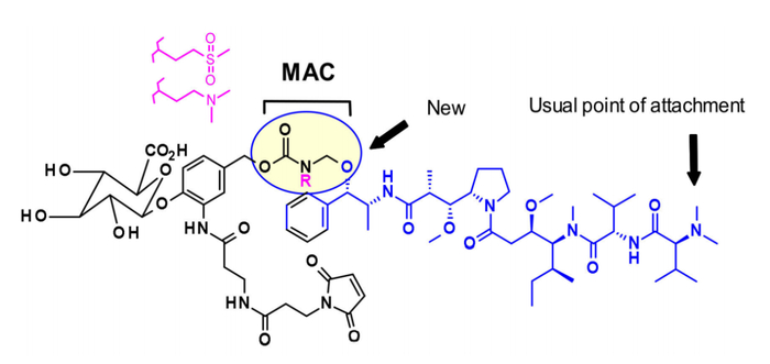 2015年,西雅图遗传学的研究人员将ADC有效载荷的范围扩大到包括叔胺,特别是N-二甲基auristatine,首次通过铵键将药物与单克隆抗体结合。所得ADCs在生理条件下稳定,体内外活性高,免疫特异性强。这些结果扩大了ADC可用于靶向给药的药物种类。