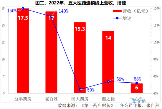 线上营收增长最快的也是益丰药房、老百姓。