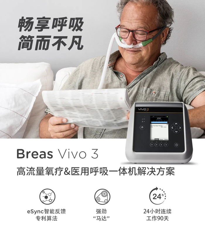 Vivo3是新一代的双水平呼吸机,旨在为慢性呼吸功能不全的非依赖性患者提供舒适的个性化无创、有创及HFNT呼吸支持。直观的用户界面简洁易用。呼吸机内置多种模式及各类监测功能,使应用变得非常灵活,是广大患者的理想选择。