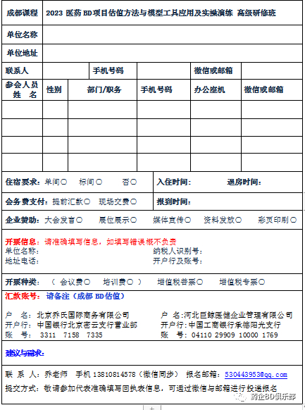 报名方式:请参加代表填写回执表信息,可通过微信或邮箱进行投递报名