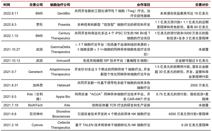 2020年以来CGT行业部分重要交易(截至2023年1月10日)