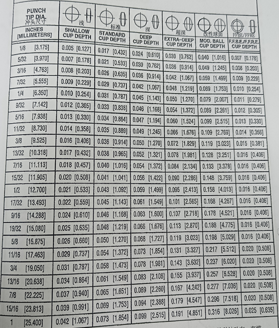f模具设计不合理,冲杯深度较深,易粘冲。合理的冲杯深度可参考下表: