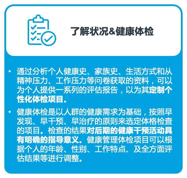 健康管理主要分为三个步骤,帮助个人由治疗转为预防,以保持身心健康状态。