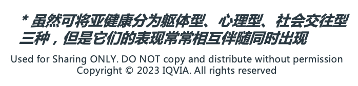 “亚健康”已经是我们耳熟能详的概念,然而由于缺乏科学的引导以及受互联网多种多样信息来源的干扰,消费者的健康焦虑可能不减反增。为此,IQVIA消费者健康团队将在近期首次发布《企业白领健康管理趋势白皮书》,以健康领域的专业洞见,帮助企业白领用更系统的方式了解 “亚健康的概念”、自我评估“是否处于亚健康状态”,并更好地进行健康管理,实现对自我健康管理观念及方式的提升。