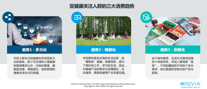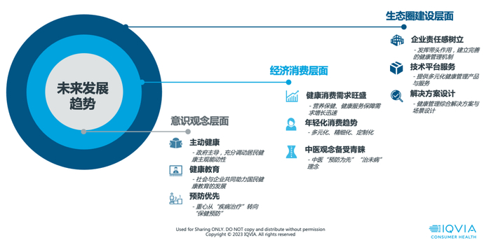根据IQVIA的研究,我们判断未来亚健康市场发展趋势主要分为三个层级。