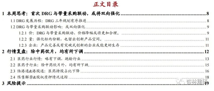 1 本周思考:首次DRG与带量采购联动,或将双向强化