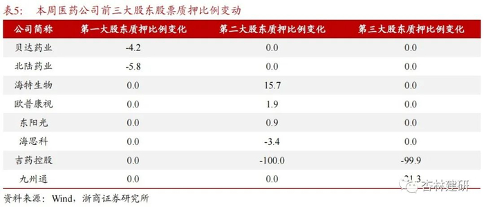 近一个月来限售股解禁及股权质押情况变化:关注基本面因素外可能影响股价流动性和交易配置的因素。2023年5月8日至2023年6月9日,共有39家医药上市公司发生或即将发生限售股解禁,其中新产业、吉贝尔、普蕊斯等公司涉及解禁股份占总股本比例较高。在股权质押方面,贝达药业、北陆药业等公司第一大股东股权质押比例下降较多。