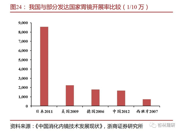 我国内镜诊疗开展率低,早诊早治和医疗保健消费提升使其具有广阔发展潜力。