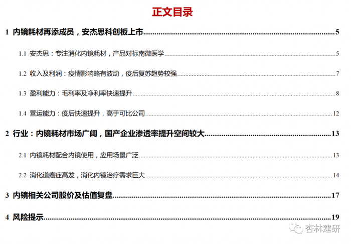 1.1 安杰思:专注消化内镜耗材,产品对标南微医学