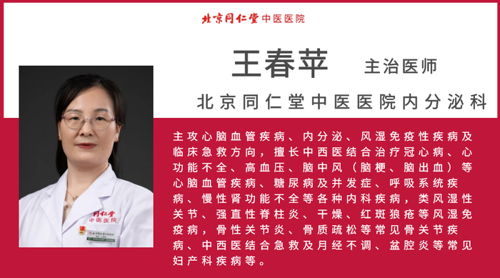 今天由北京同仁堂中医医院内分泌科主治医师王春苹与大家做相关分享。