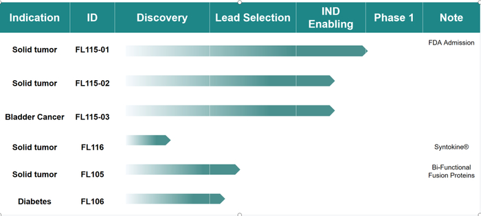 IL-15是一种多效性细胞因子,可以和细胞上IL-15Rα亚基结合,具有激活T细胞、B细胞和NK细胞,并可介导这些细胞的增殖和存活的功能。FL115使用基于公司独有的F-body技术的创新设计,克服了重组IL-15半衰期短的缺点,且分子量小,实体瘤穿透能力强,工艺简单稳健,具有更低的生产成本。因此,FL115有望成为肿瘤免疫治疗中的新秀,惠及众多肿瘤患者。
