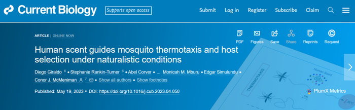 2.Diego Giraldo et al.Human scent guides mosquito thermotaxis and host selection under naturalistic conditions. 2023 May19;DOI:https://doi.org/10.1016/j.cub.2023.04.050.