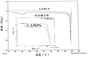 奈拉替尼(neratinib),原研惠氏,商品名Nerlynx,药用晶型为水合物II形。原研晶型专利保护了水合物II形,而无水物I形无权,拟保护其制备方法。XRD分析结合图1的DVS曲线显示,在室温条件下,RH>40%情况下,无水物I形逐步吸水转变为水合物II形;在RH<10%后,水合物II形逐步脱水变成无水物I形。即无水物I形和水合物II形在不同湿度下,可相互转化。