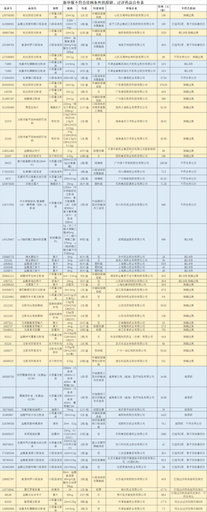 附1:河北新申报不符合挂网条件的原研、过评药品公布表