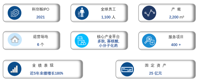 公司围绕高级医药中间体及原料药的生产工艺研究,制剂剂型和处方工艺研究、质量研究、稳定性研究等药学基础研究,结合多肽药物与小分子化药各自特点,解决了多肽药物及小分子化药研发及合成生产过程中的一系列全球性技术难题,建立了五大行业领先的核心技术平台: